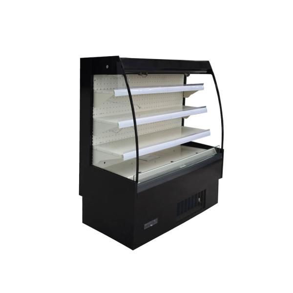 ⇒ Open front chiller designed for the display of dairy products, fresh and pre-packed products